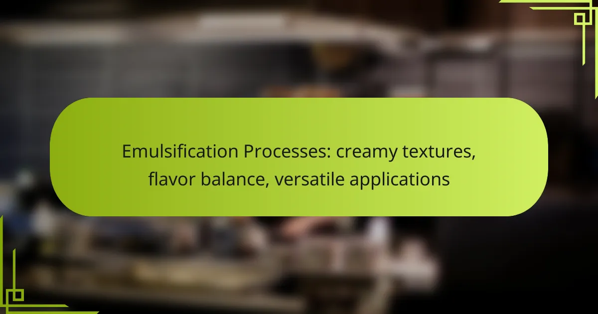Emulsification processes enhance flavor balance by creating stable mixtures of ingredients that would otherwise separate, allowing for a more uniform distribution of flavors. This technique is essential in many culinary applications, as it helps to integrate diverse components, resulting in a harmonious taste experience.